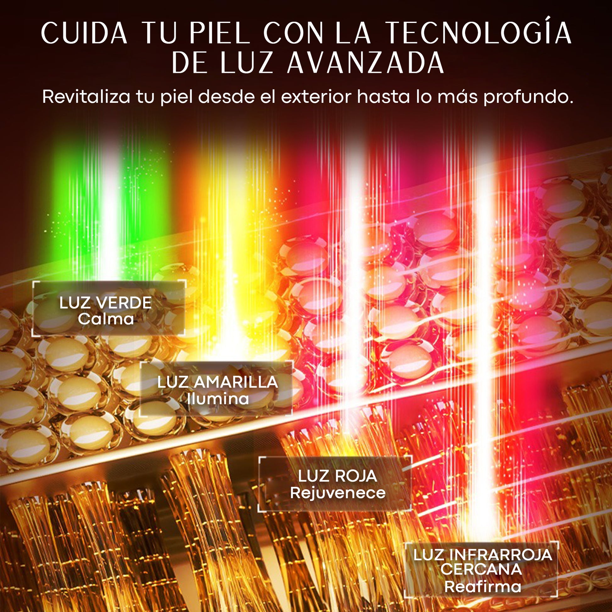 - Infrarrojo: acción profunda para elasticidad y recuperación, reduce inflamación.